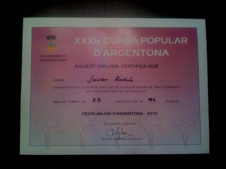 El jueves 5 de agosto de 2010 participé en la carrera que como cada año organiza el ayuntamiento de Argentona. Una carrera gratuita de 5 Km de recorrido por las calles de la villa. La verdad es que es una carrera que recomiendo a todo el mundo, por su organización, y por que es rápida de hacer. Muy bien a pesar de ser gratuita está muy bien organizada, varios efectivos de la Policia Local d’Argentona, miembros de Cruz Roja y un buen número de voluntarios que había para satisfacer las necesidades de cada corredor. En definitiva una carrera que se la recomiendo a todo el mundo.