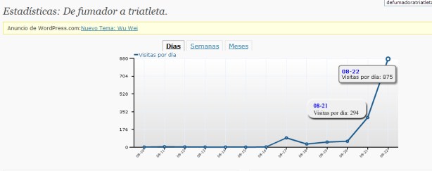 Hoy es día 22/8/2010 y es una fecha que creo que, por lo menos en mucho tiempo, no voy a poder olvidar. Es el día en el que mi blog a registrado más visitas y creo que va a ser el último con tantas visitas en él.
