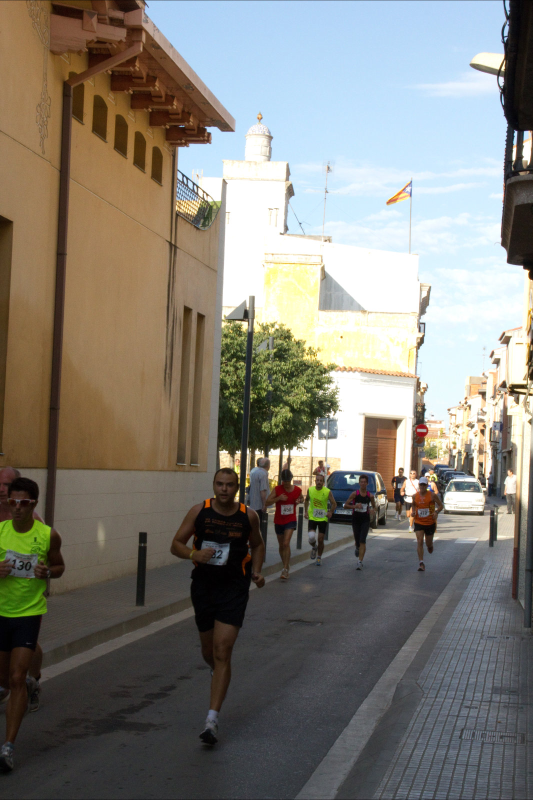 Una carrera de 10 Km, muy llanita pero con los últimos cuatro kilómetros muy duros debido a que se corren por en medio de campos de cultivo en donde las únicas sombras que uno puede encontrar son las de los postes de teléfono y de luz. Fueron 4 kilómetros interminables por que durante la mayor parte de la carrera hubo un tiempo agradable, hasta que empezó a salir un sol abrasador.  La verdad es que fué algo durilla, por que además tenía que estar ahí sobre las 7:45 de la mañana, lo que me suponía salir desde Montgat con más o menos una hora de margen, y eso a veces da mucha pereza. Pero uno se arma de valor y aguanta lo que le echen.