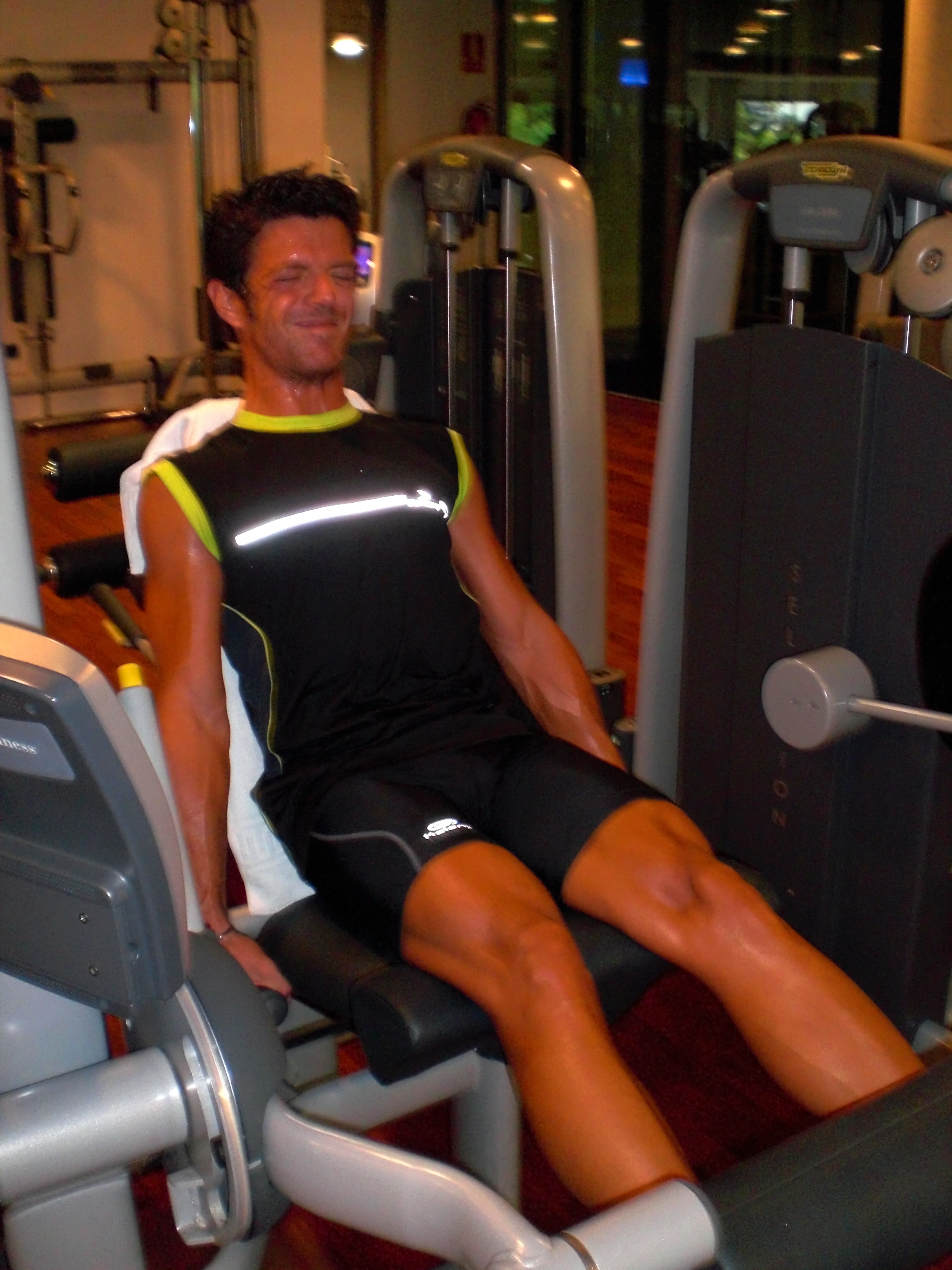 Hoy me ha invitado Víctor al gim (peaso de gimnasio) para machacarnos un ratillo. Hacía tiempo que no levantaba peso con los cuádriceps ni con los isquiotibiales. Vamos, que las piernas no las he trabajado mucho a base de pesas. Así que después de ponernos un buen nivel de fuerza en la elíptica durante 20 min y correr a una media de 10 km/h en la cinta durante 20 min también me he puesto a trabajar las piernas un ratillo y  ha reforzar músculos y articulaciones con pesas.