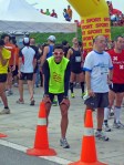 A medida que iba descubriendo cosas en la carrera mis piernas se iban cargando más de lo habitual o por lo menos más de lo que deberían. Imagino que es algo que no estoy haciendo bien, como el no hacer un entreno específico, la falta de descanso, o el hacer 18 km corriendo el lunes y 45 de Btt el martes. Aunque no estaba sufriendo ni mucho menos lo que sufría en mi primera media maratón, y eso me hizo aumentar el ritmo, a pesar de notarme las piernas «cargaditas». Al paso por las metas de cada kilómetro sentía que estaba corriendo mejor que hace unos meses, que podía aguantar mejor el ritmo y bajar del mejor y único tiempo que tenía en media maratón 1h y 50 min. Cuando llegaba a cada uno de los avituallamientos colocados rigurosamente cada cinco kilómetros bebía unos sorbitos y seguía hacia adelante con ganas de llegar al último de ellos en el que nos daban además de bebida un cuarto de naranja, plátano o nueces, lo suficiente como para no llegar al borde del desmayo a la meta como en la Mitja Marató de Sabadell. Creo que en los avituallamientos cometieron otro error. El poner a niños repartiendo bebidas, esponjas y cortando fruta tiene su parte positiva ya que los educa en el deporte desde pequeños, pero su falta de experiencia hace que no puedan repartir las botellas al ritmo de los corredores, o no puedan cortar la misma velocidad que un adulto. Pero creo que es un error sanísimo y que compensa más la educación de esos críos que el querer corregir sus pequeños fallos. A cada paso que daba me estaba entrando ya el gusanillo de apuntarme a la maratón el año que viene, vamos, que es una carrera que merece repetir por su buena organización a pesar de los «fallitos».
