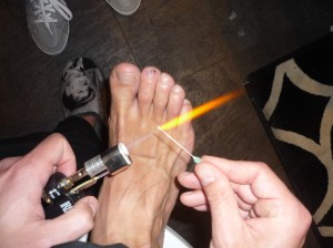 Agujereando mi uña. Foto (sin mirar)by Clara.