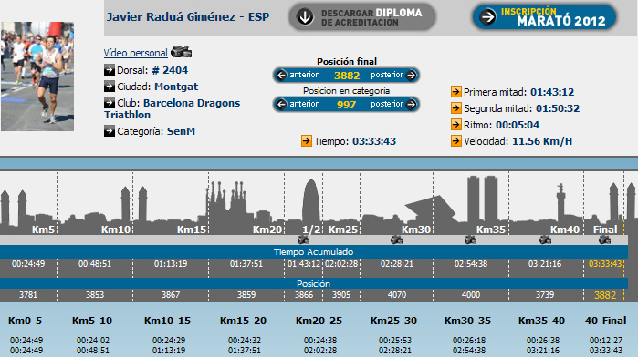 Gracias por leer mi blog y por escribir en él. La verdad es que el propósito era bajar de tres horas y media, pero entre una cosa y otra y que pequé de conservador me quedé a las puertas. En la siguiente bajaré seguro, lo prometo.