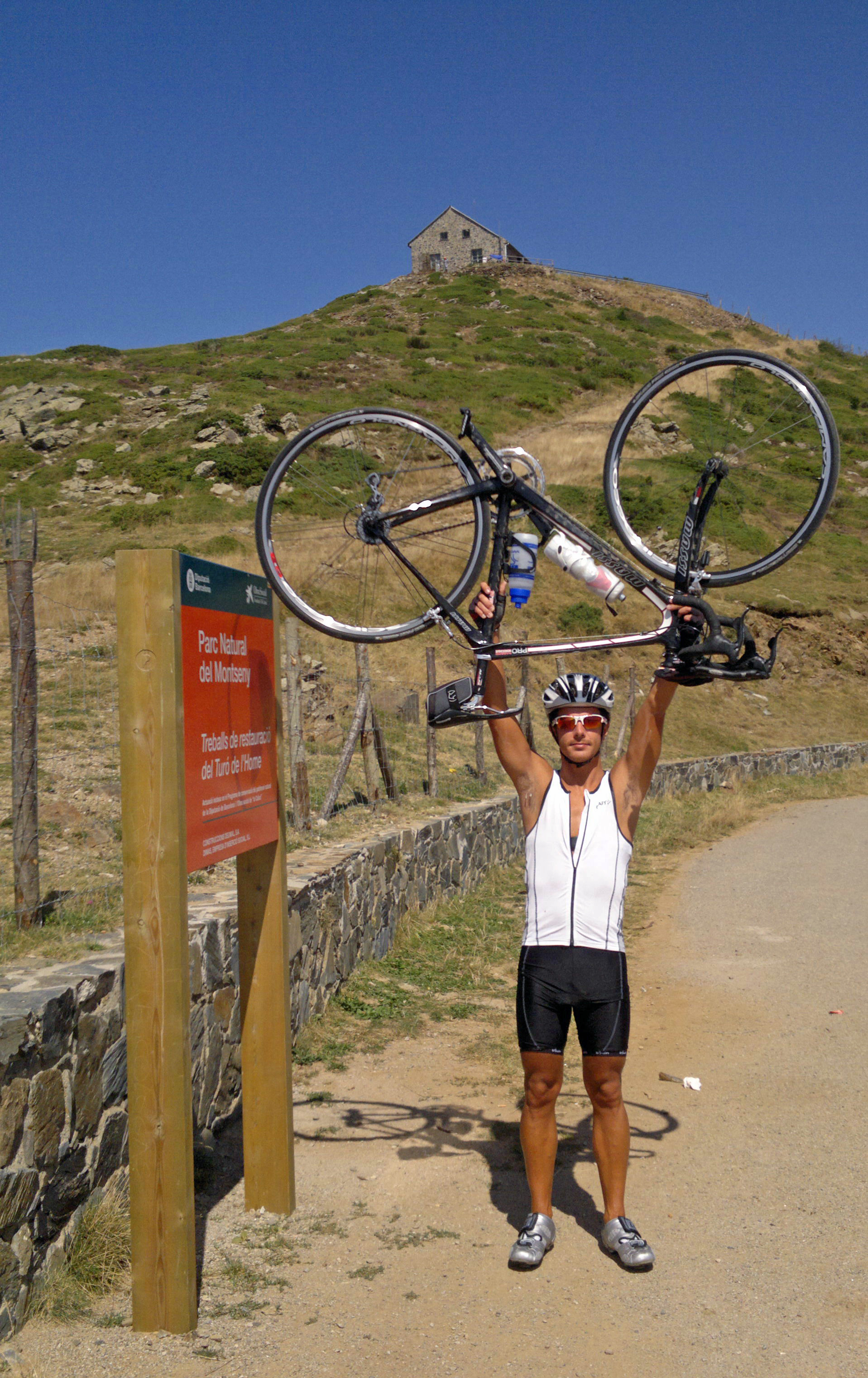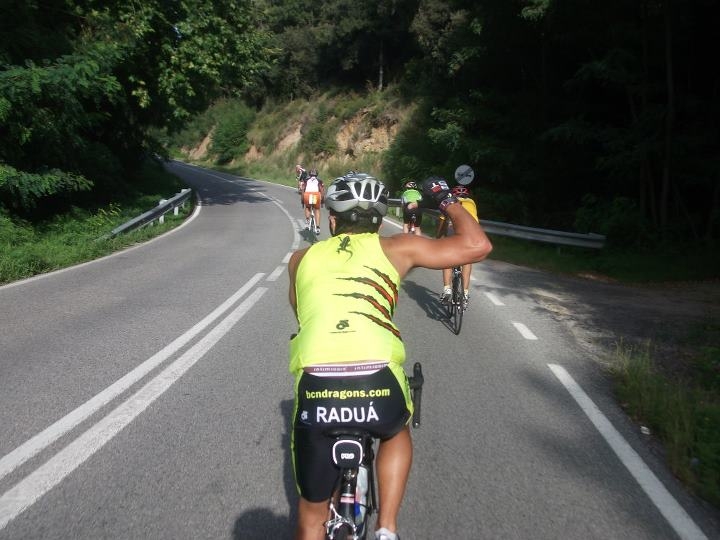 También he aprovechado el veranito para hacer algunas salidas en bicicleta de carretera con dos pezado de fenómenos, Ferran Pintor (24h en bicicleta en dos ocasiones, además de ser un ciclista brutal), y Xavi Alvarez (Ironman de Lanzarote, Altriman, 24h Cyclotour, no coments…) En la primera salida no llegué a coronar Collformic (1140 aporx), ya que pasé de hacer no más de setenta kilómetros en bicicleta a hacer ciento treinta y cinco de golpe y con tres puertos de segunda, y quise reservar, aunque después me arrepentí, pensando en que podía haber llegado. Y en la siguiente salida subí hasta coronar el Turó del Home (1650 aprox), aunque el total fueron tres puertos, dos de segunda o incluso de tercera y uno de primera categoría. Collsacreu, Turó del Home y Font de Cera.